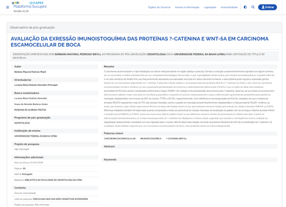 Oral squamous cell carcinoma (OSCC) is the most common histological form of head and neck cancer. Because of the highly aggressive evolution of some tumors, more knowledge is needed about its biological behavior, which may be achieved using immunohistochemical markers. Wnt-5a, of the Wnt family, is frequently upregulated in certain human cancers, and it can regulate gene expression through a mechanism dependent on β-catenin. So, the aim of this study was to evaluate immunoexpression of β-catenin and Wnt-5a proteins in OSCC. Thirty six OSCC lesions were graded according to WHO diagnostic criteria for histological typing of cancer. The immunohistochemistry was performed in line with the Streptavidina-biotin method. β-catenin protein expression had a higher membrane expression pattern in well differentiated tumors (66.67%), while moderately and poorly differentiated tumors showed a predominance of cytoplasmic expression pattern with less than 20% in the nuclei. Furthermore, Wnt-5a expression was observed in most of the sample (86%) with more than 70% of their cells marked, usually in a cytoplasmic expression pattern (61.11%). It was also verified that tumors with low intensity Wnt-5a expression had lower mean percentages of marked cells (ANOVA, p=0.000). There was also a statistically significant difference between the mean percentage of marked cells in the palate compared with the tongue, mouth floor and lower alveolar ridge (ANOVA, p=0.004). The study found no influence of Wnt-5a on the β-catenin signaling. It seems that the studied proteins play an independent role in OSCC.